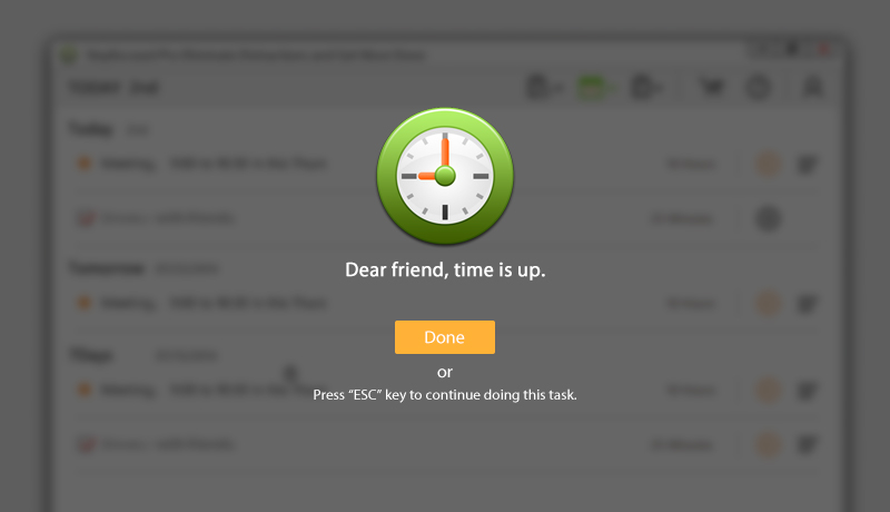 Schedule your tasks for ‘Today’, ‘Tomorrow’, ‘SOMEDAY’ or ‘UPCOMING’. Repeat tasks for ‘Once a day’, ‘Once a week’, ‘Once a month’ or ‘Once a year’.